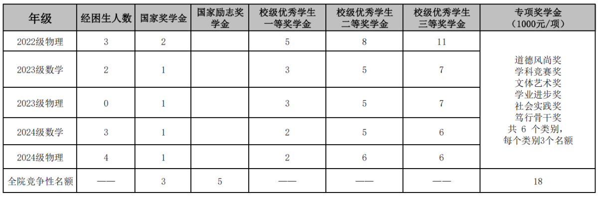 ①国家奖学金、国家励志奖学金共两个奖项,根据《理学院关于开展2024-2025学年度本科生综合素质测评的通知》的综测结果,请符合基本条件同学报名申请,参与答辩。学院根据答辩得分从高到低进行排序推荐。