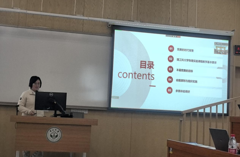 物理与天文学院李祝老师以“精密测量科研在物理实验竞赛中的实践探索”为题,展示了科研中的精密测量技术与实验教学相融合的范例,探讨了如何通过实验教学培养未来科研人才。