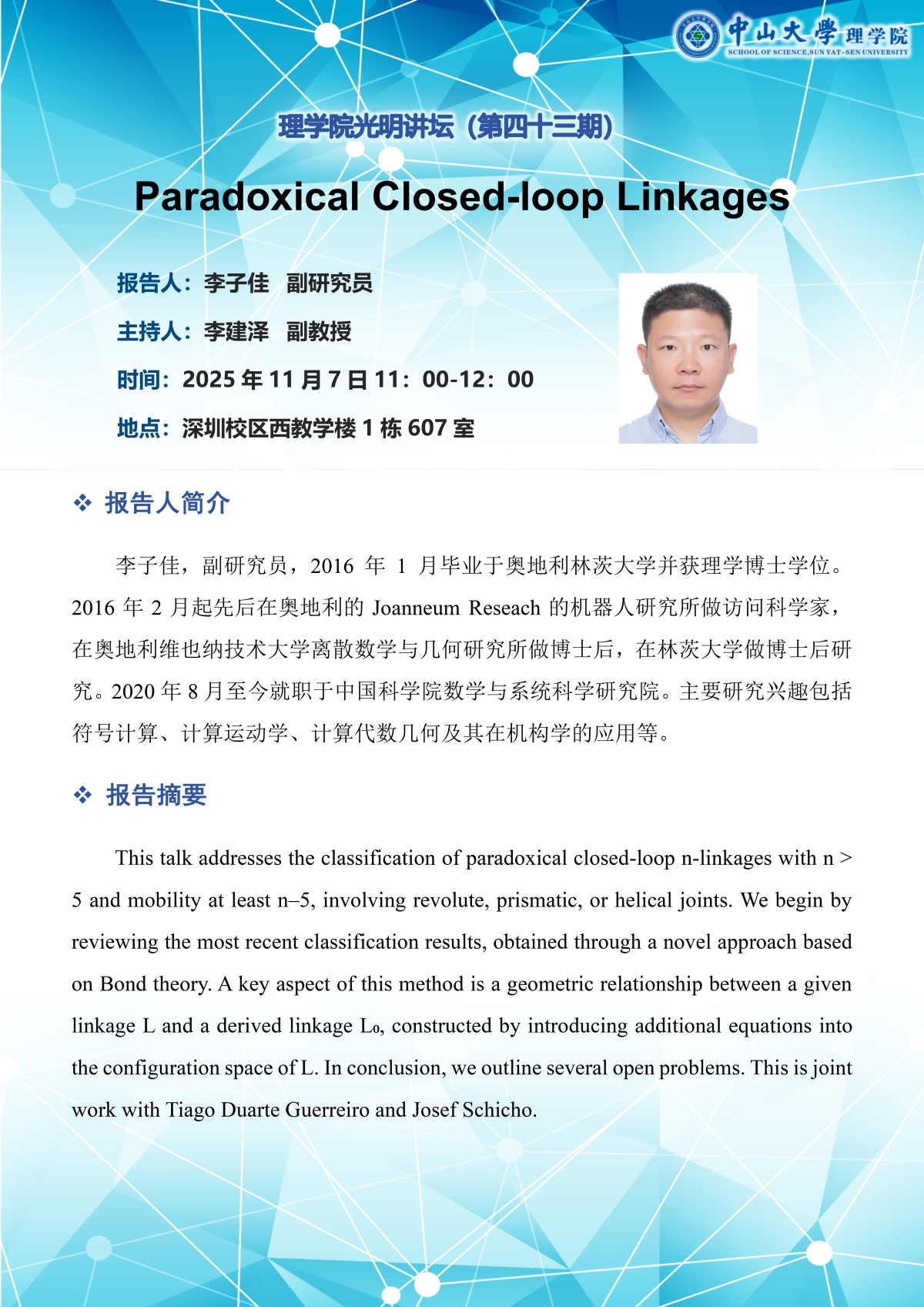 光明讲坛(第43期):Paradoxical Closed-loop Linkages