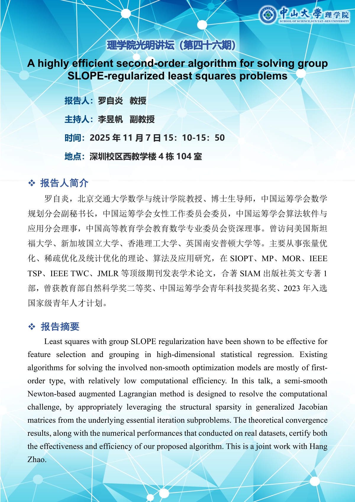 光明讲坛(第46期):A highly efficient second-order algorithm for solving group SLOPE-regularized least squares problems